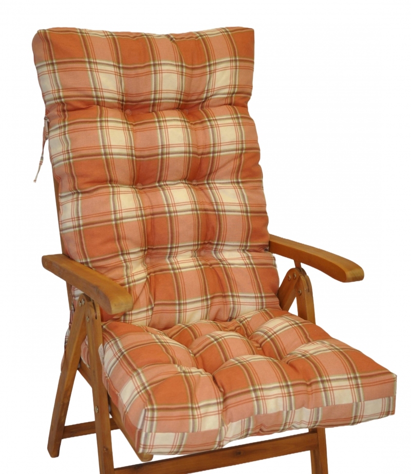 Polstr na teakové zahradní křeslo vysoké - látka UNIKO oranžová kostka