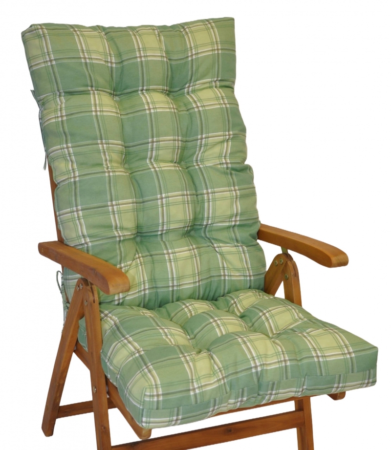 Polstr na teakové zahradní křeslo vysoké - látka UNIKO zelená kostka