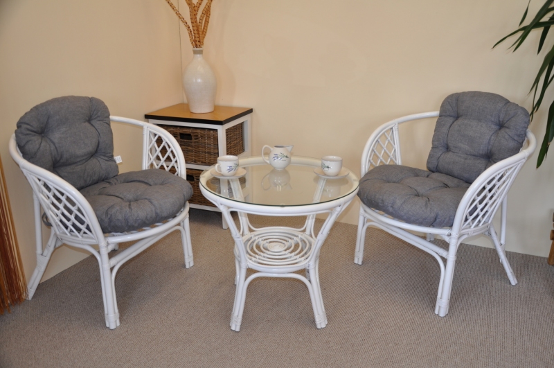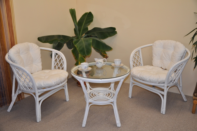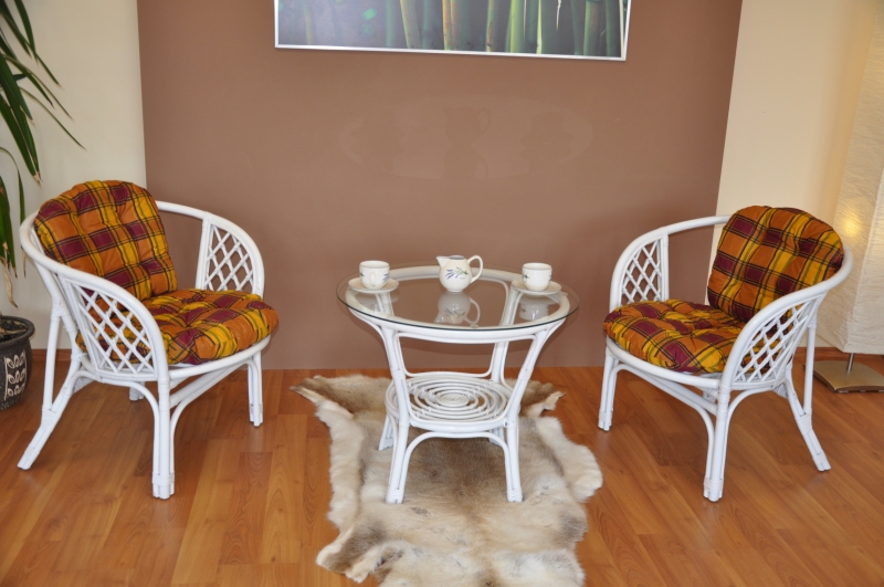 Ratanová sedací souprava je vyrobena z přírodního ratanu s barvou konstrukce odpovádající fotografii výrobku,obsahuje 2 křesla a stolek se sklem, kompletní sadu polstrů vyrobených v ČESKÉ REPUBLICE.