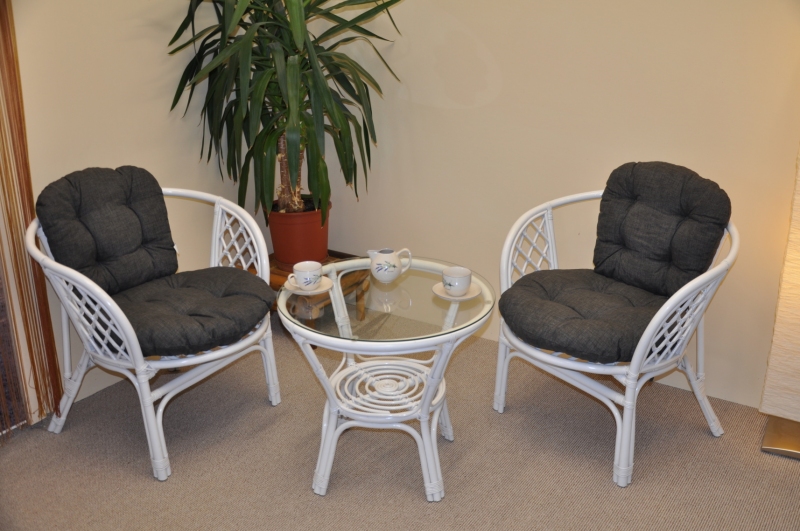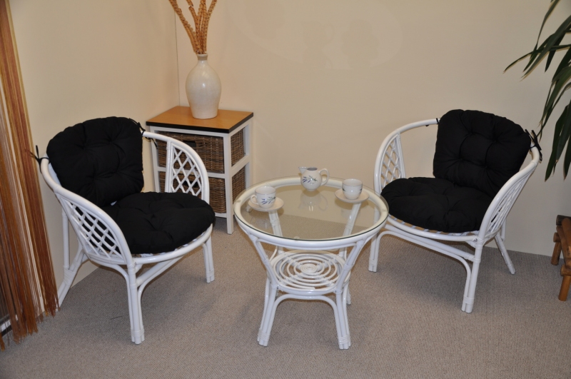 Ratanová sedací souprava Bahama bílá 2+1, polstry černé