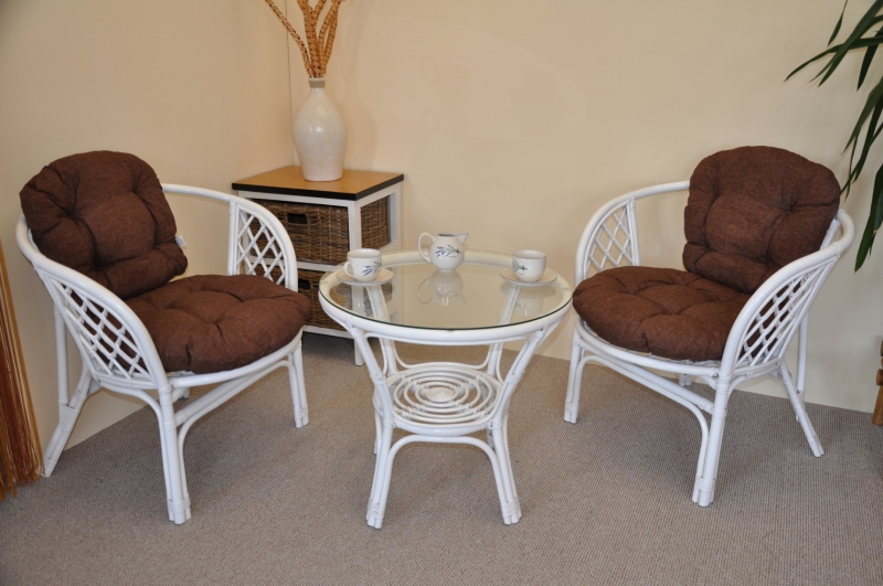 Ratanová sedací souprava Bahama bílá 2+1, polstry hnědý melír