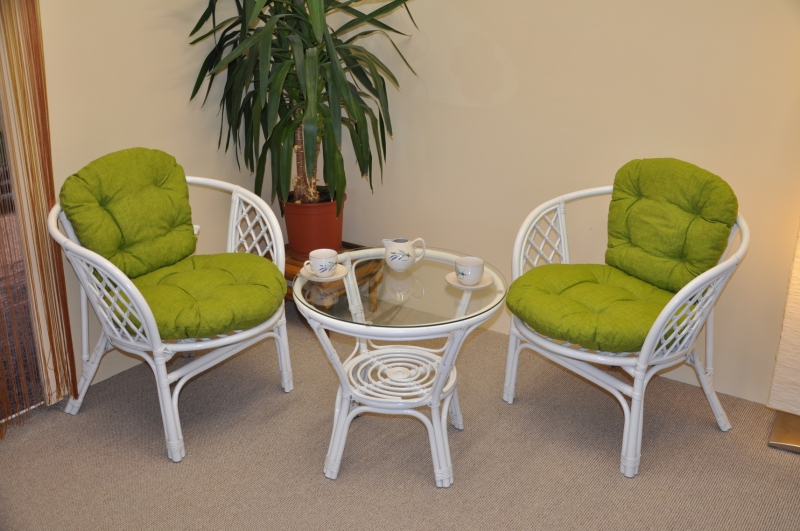 Ratanová sedací souprava Bahama bílá 2+1, polstry zelený dralon