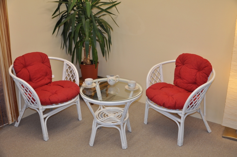 Ratanová sedací souprava Bahama bílá 2+1, polstry vínové