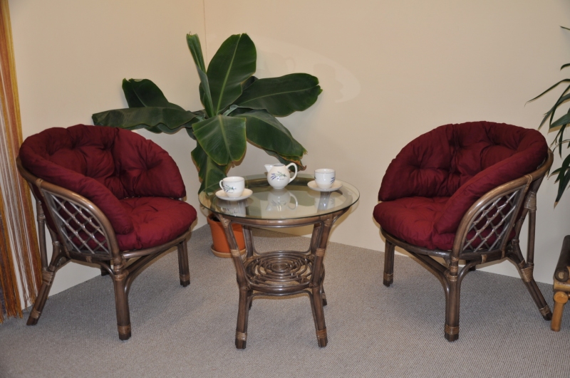 Ratanová sedací souprava Bahama hnědá 2+1, polstr MAXI vínový