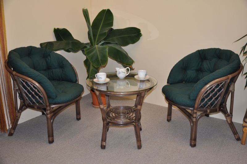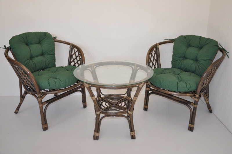 Ratanová sedací souprava Bahama hnědá 2+1, polstr tmavě zelený melír
