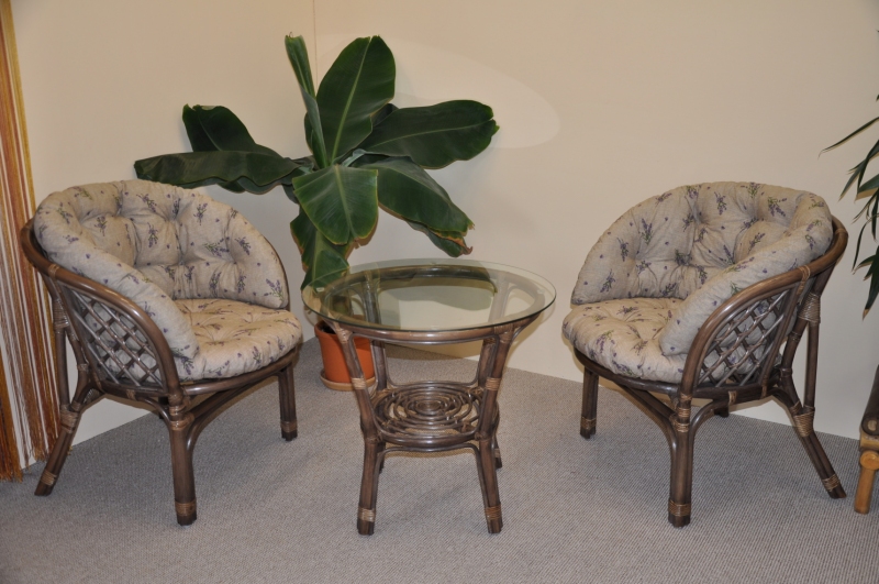Ratanová sedací souprava Bahama hnědá 2+1, polstr MAXI levandule
