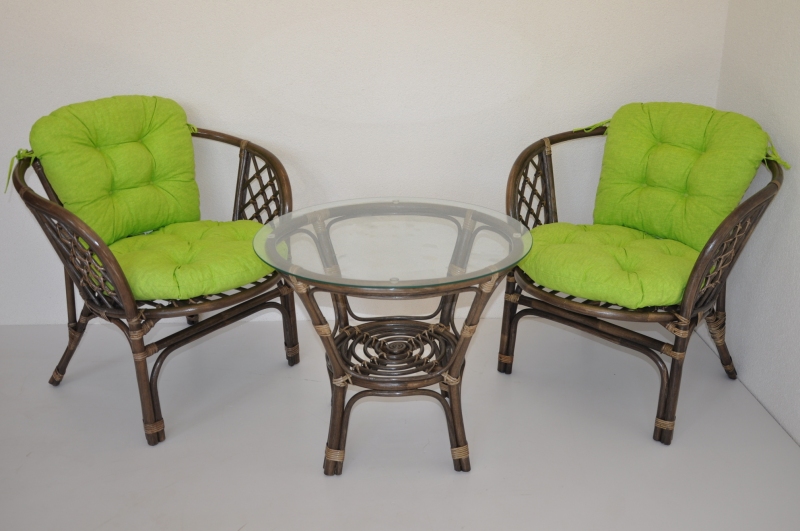 Ratanová sedací souprava Bahama hnědá 2+1, polstr světle zelený melír