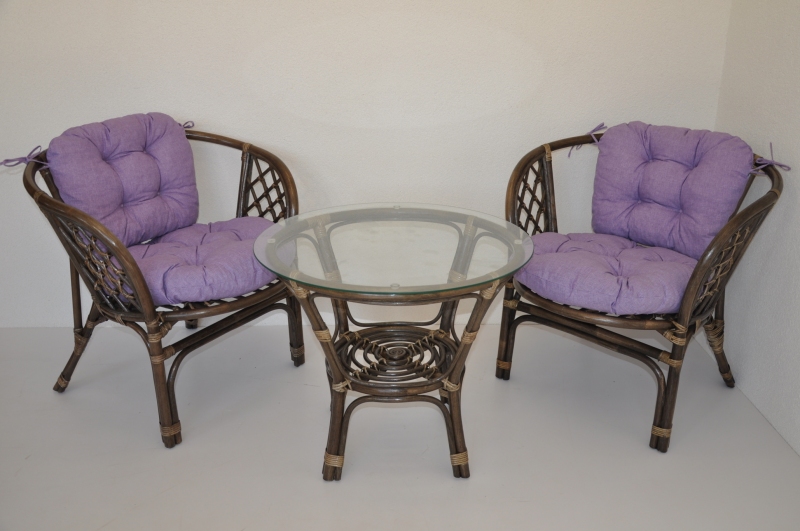 Ratanová sedací souprava Bahama hnědá 2+1, polstr fialový melír