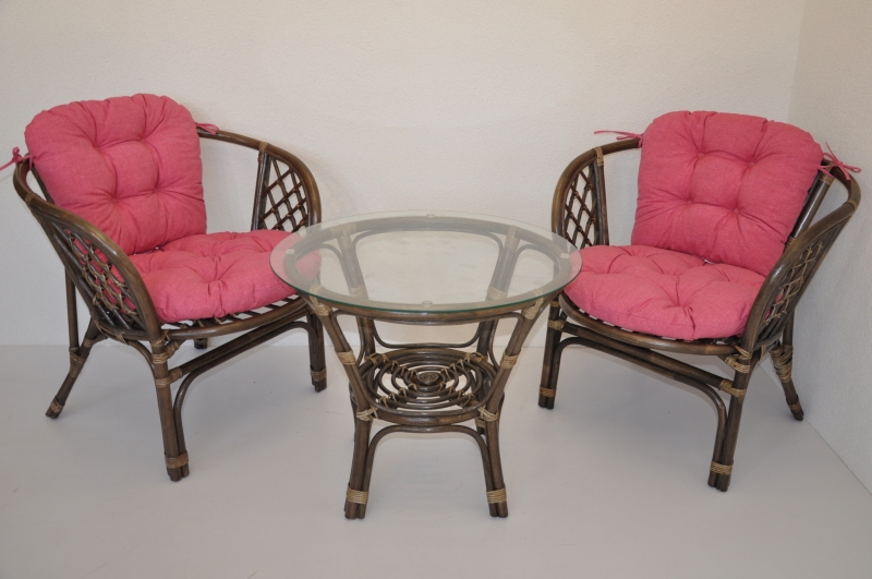 Ratanová sedací souprava Bahama hnědá 2+1, polstr malinový melír