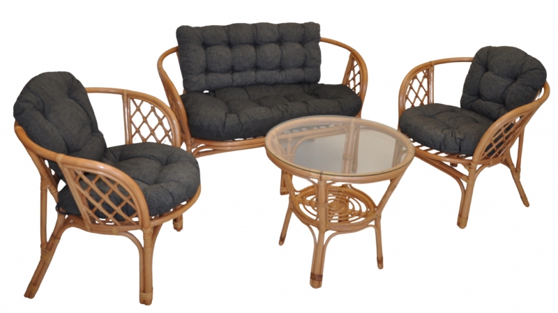 Ratanový nábytek - ratanová sedací souprava Bahama je vyrobena z přírodního ratanu s barvou konstrukce v tmavě medovém odstínu. Souprava obsahuje pohovku, 2 křesla, stolek se sklem a kompletní sadu polstrů.