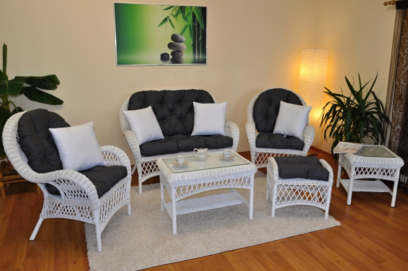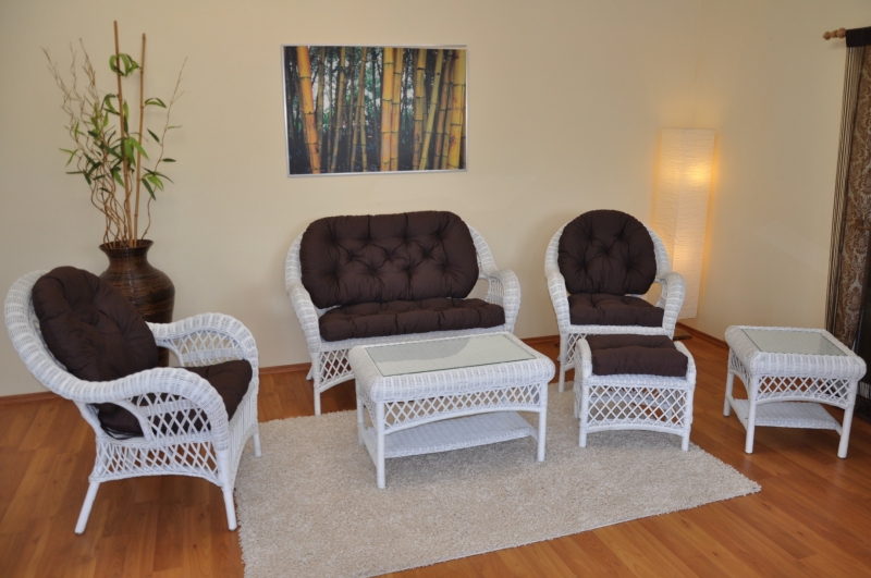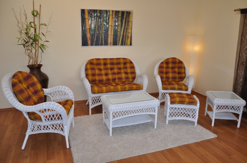 Barva ratanové konstrukce i ratanového výpletu je bílá.