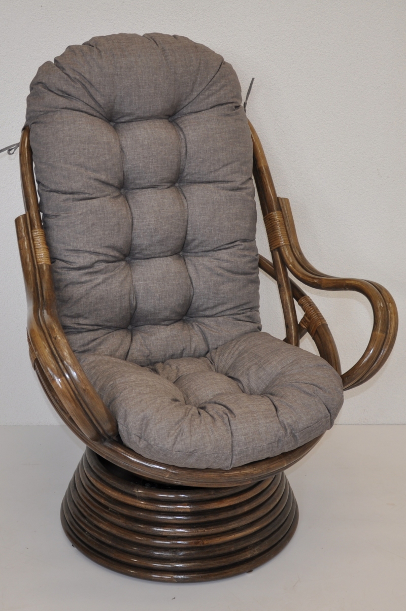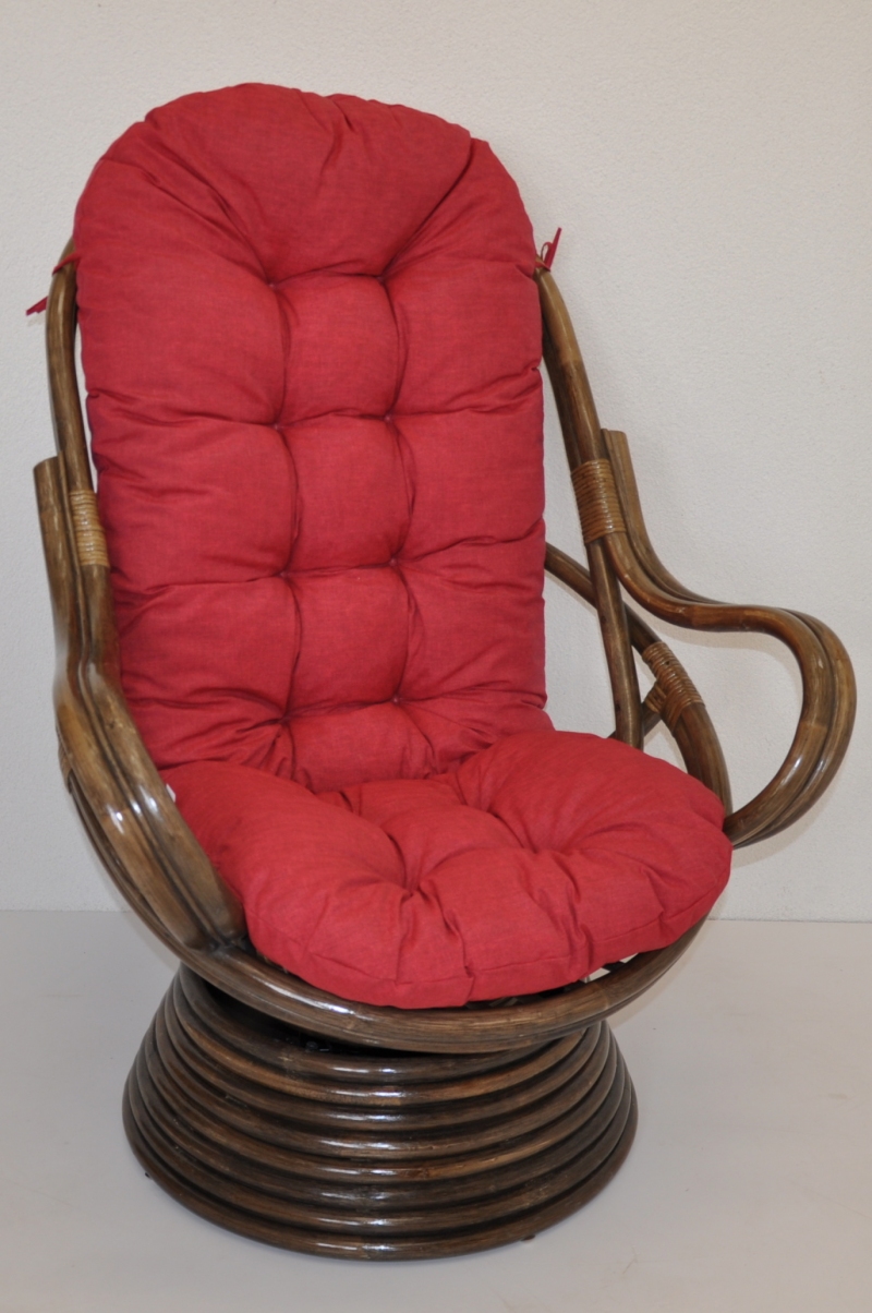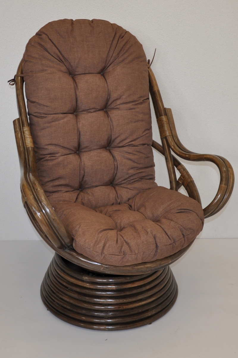 Barva ratanové konstrukce i ratanového výpletu je hnědá. Velikost ratanového křesla je 77x87x100 cm. Nosnost křesla swivel je 110kg. Kovový díl se čtyřmi pružinami zajišťuje pohodlné houpání a možnost otáčení křesla o 360 stupňů. Polstr je vyrobený v ČR a je pratelný na 40oC.