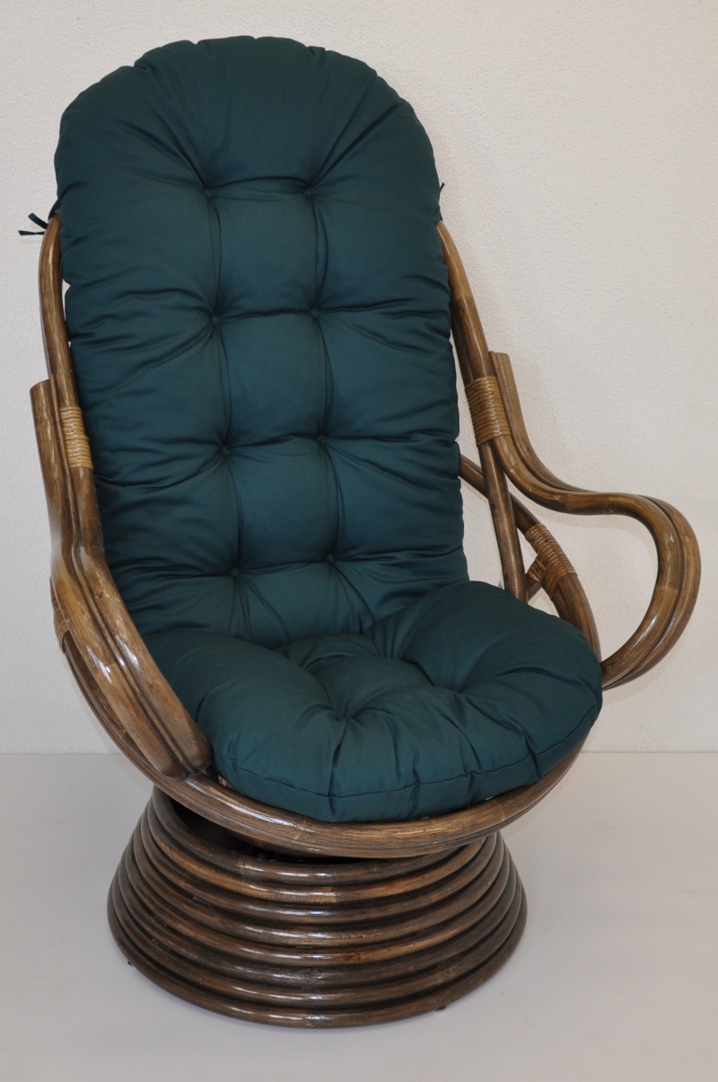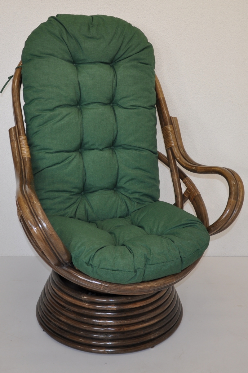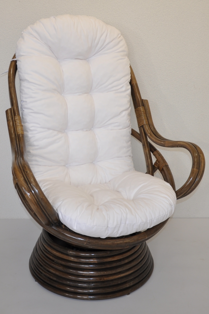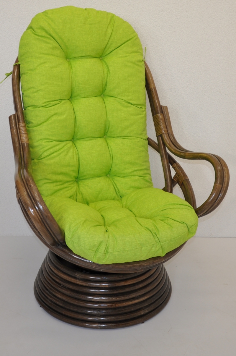 Barva ratanové konstrukce i ratanového výpletu je hnědá. Velikost ratanového křesla je 77x87x100 cm. Nosnost křesla swivel je 110kg. Kovový díl se čtyřmi pružinami zajišťuje pohodlné houpání a možnost otáčení křesla o 360 stupňů. Polstr je vyrobený v ČR a je pratelný na 40oC.